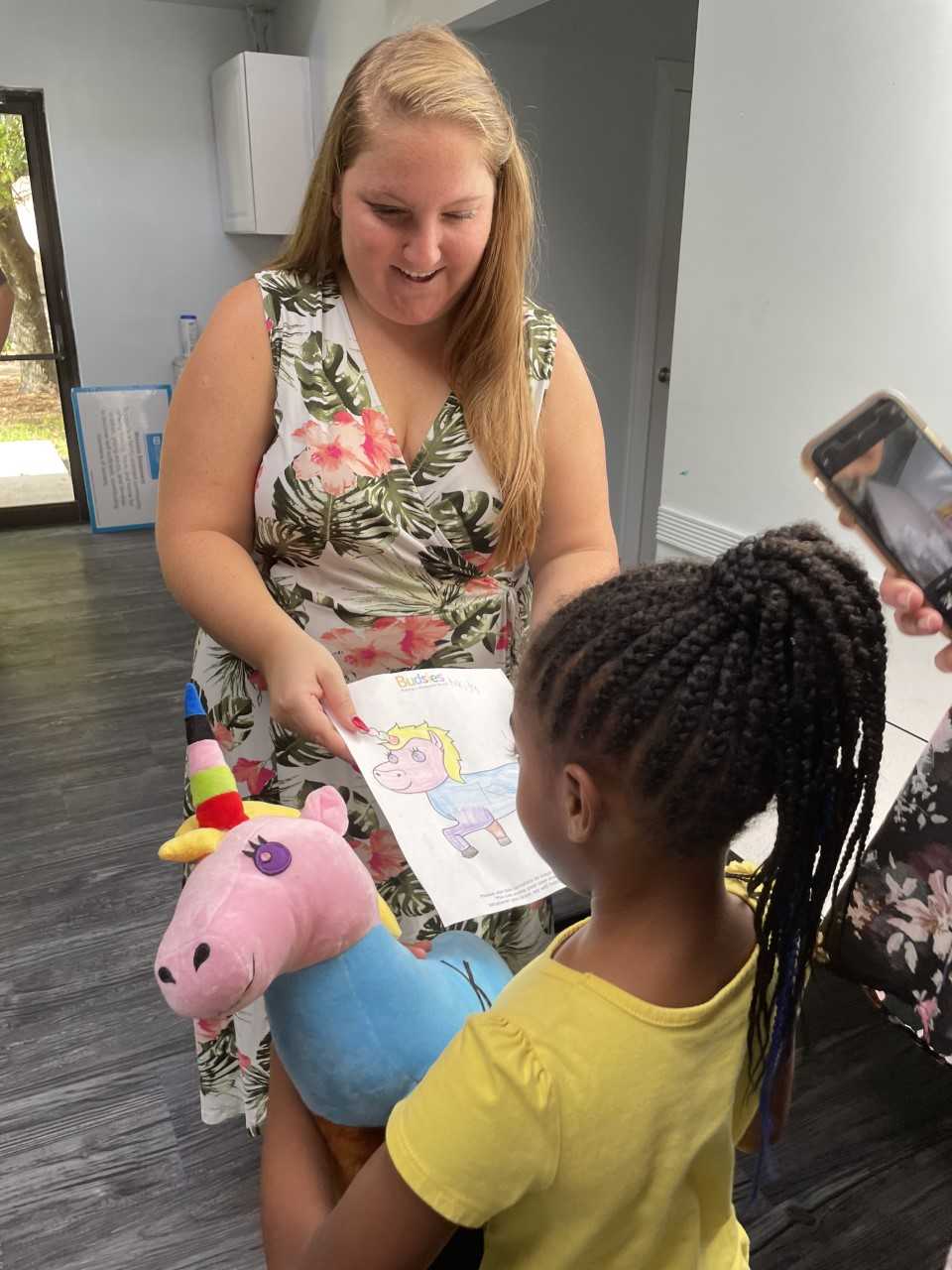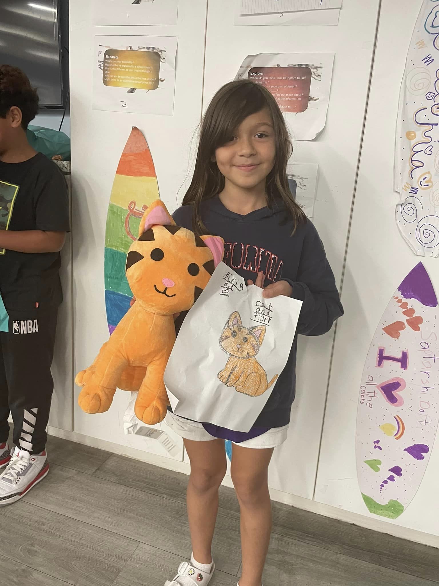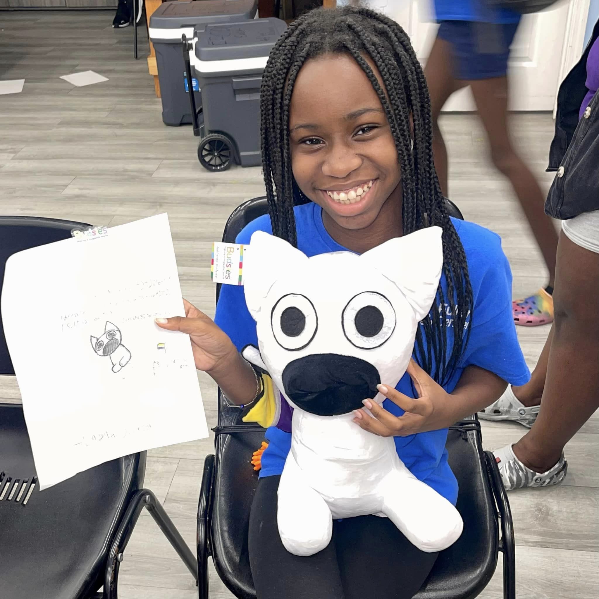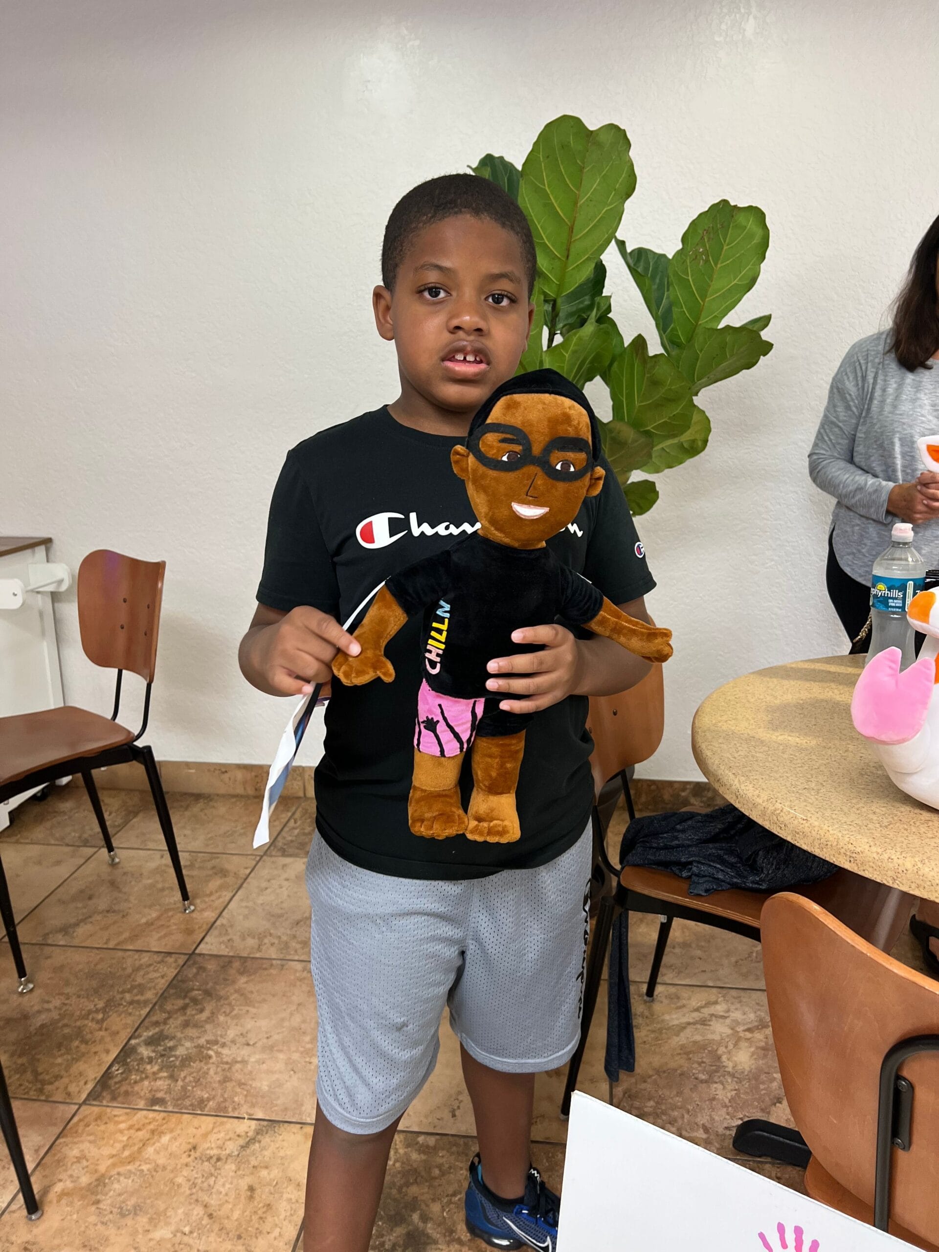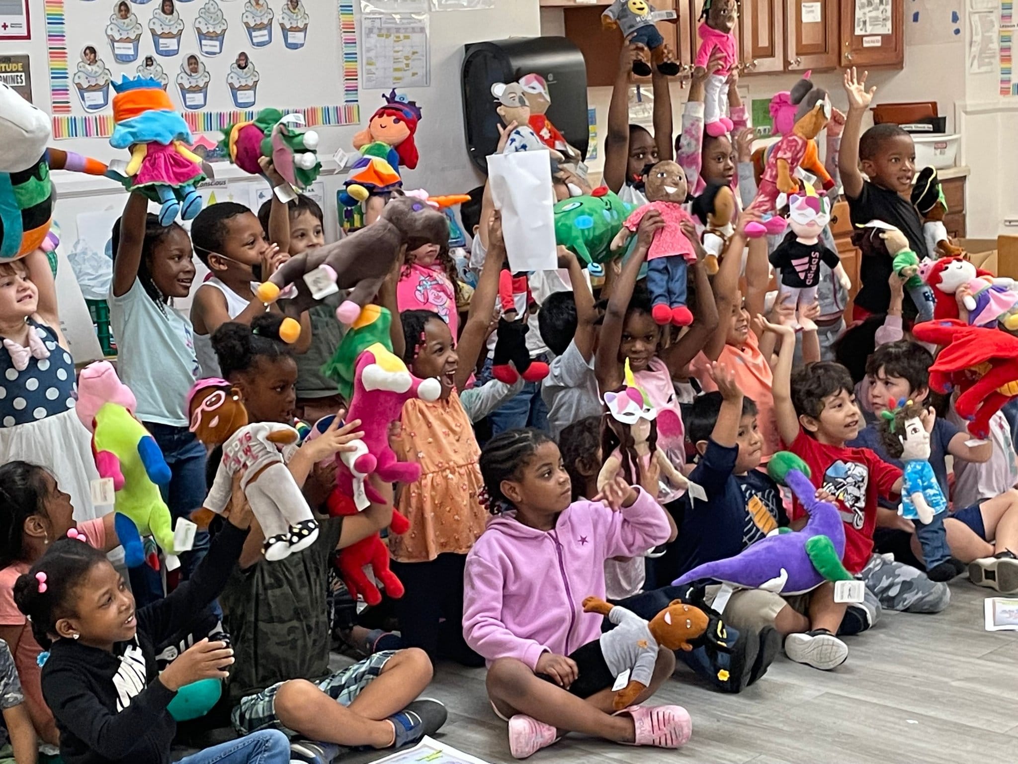 The creative drawings from four-year-olds are being brought to life as part of our partnerships with Budsies and the Fuller Center. In May of 2022, our volunteers visited the Fuller Center pre-K students for an afternoon of creativity and fun, during which the children created drawings of themselves or an imaginary animal. Some children chose to have a picture taken of themselves and the Budsies doll will come back looking like the child (selfie). The drawings or photos will be transformed into a plush toy and volunteers returned a month later for a very exciting “Reveal.”